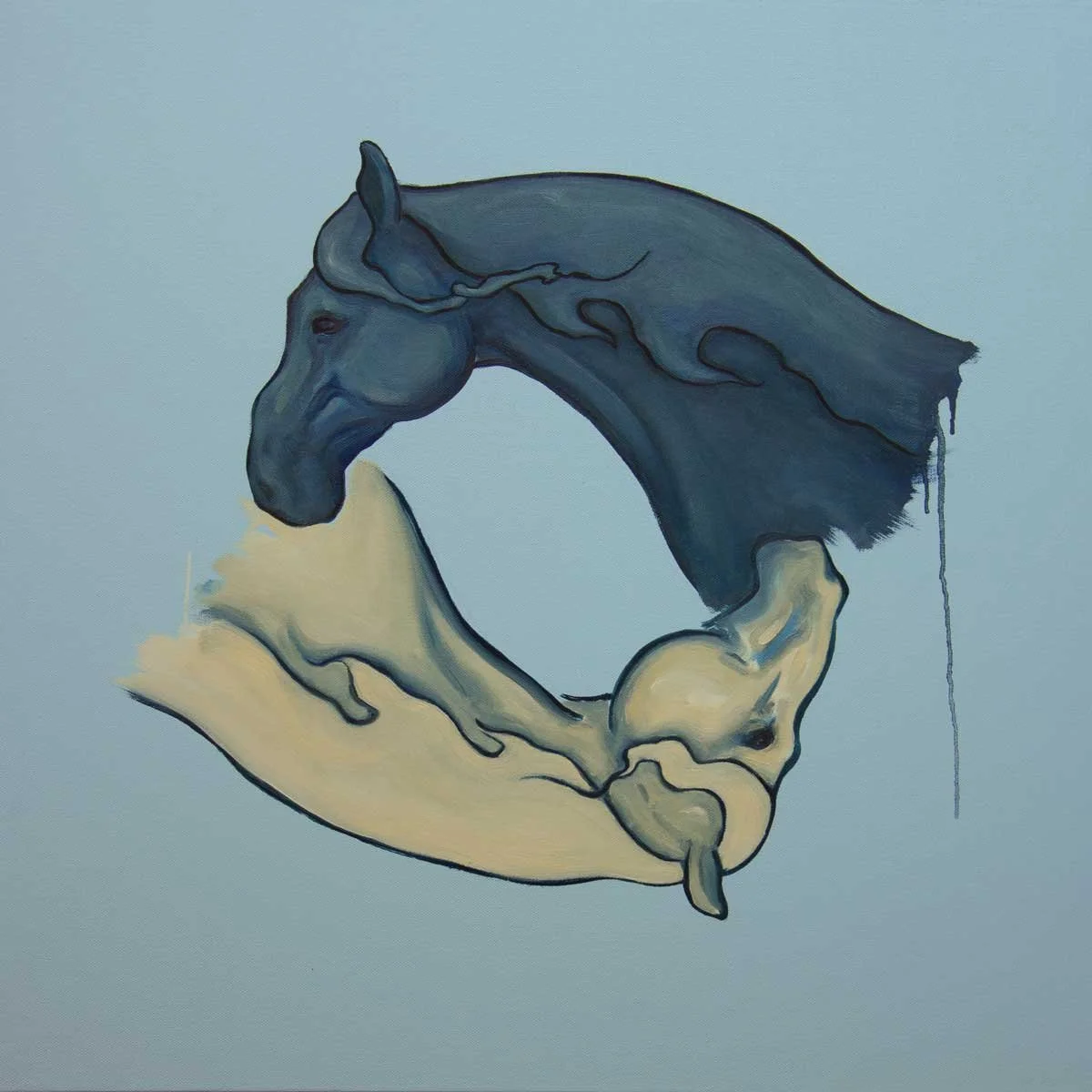 A riff on ideas of dark and light, Yin and Yang, Teichert’s horse paintings incorporate dynamic compositions with juicy brishwork
